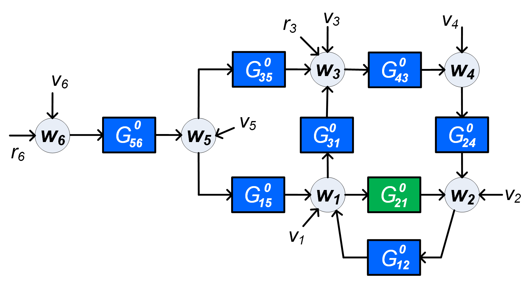 - : a dynamic (rational) transfer matrix, modeling the disturbances that are present on the node variables.